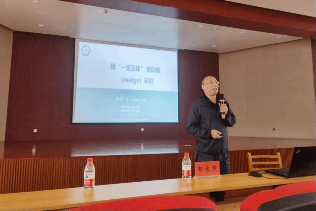 李纾研究员以“做‘一文三体’的助推(nudge)研究”为题进行专题讲座。从“nudge”入手导引大家理解“助推”的含义和其具有的心理和经济价值。用丰富的实例分析了助推的应用价值,并介绍了以小拨大的诸多应用案例研究,启发并呼吁大家做有价值的心理学研究,创造学术的“GDP”。