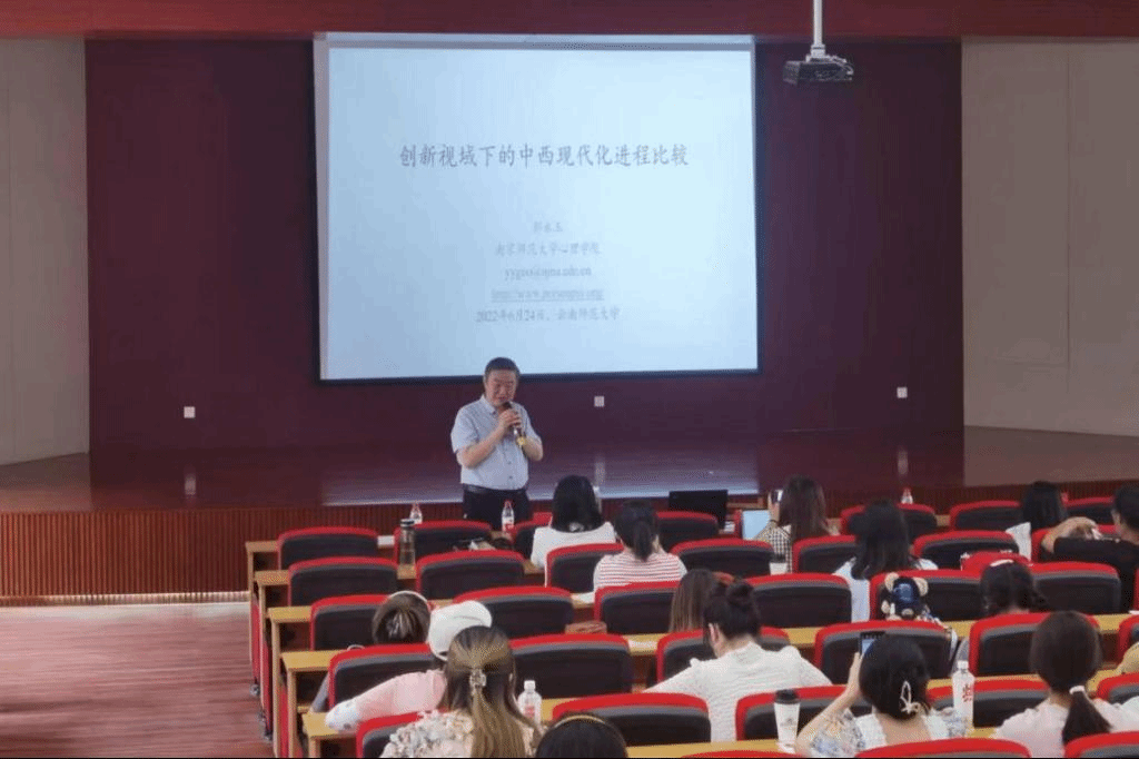 郭永玉教授以“创新视域下的中西现代化进程比较”为题做了学术报告。引导广大师生思考心理学与人类文明进程的关系。以“人”为概念揭示了心理学的理论发展历程,并阐述通识教育与创新思维的关系。以有关多国理工科大学生的批判性思维研究案例指出批判性思维的重要性,并强调通识教育的重要价值,引导广大师生注重培养创新精神。