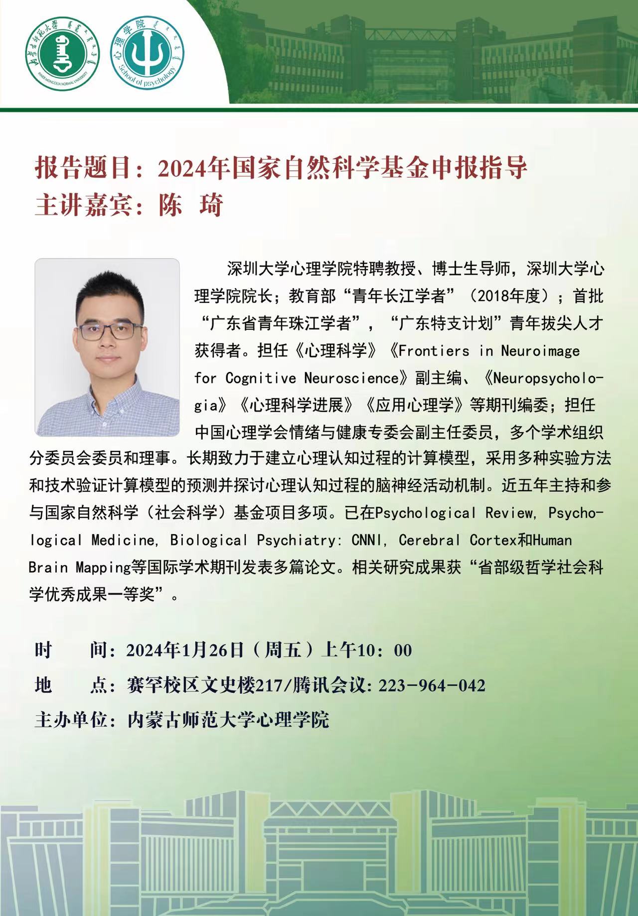 为推进2024年国家自然科学基金申报动员工作,进一步提高申报质量,1月26日,365官网召开2024年国家自然科学基金申报推进会,邀请深圳大学英国365公司官网院长陈琦教授为365官网全体教师作线上的申报指导。学院党委书记侯友、院长乌云特娜、副院长金童林及全体教师参加会议,会议由副院长金童林主持。