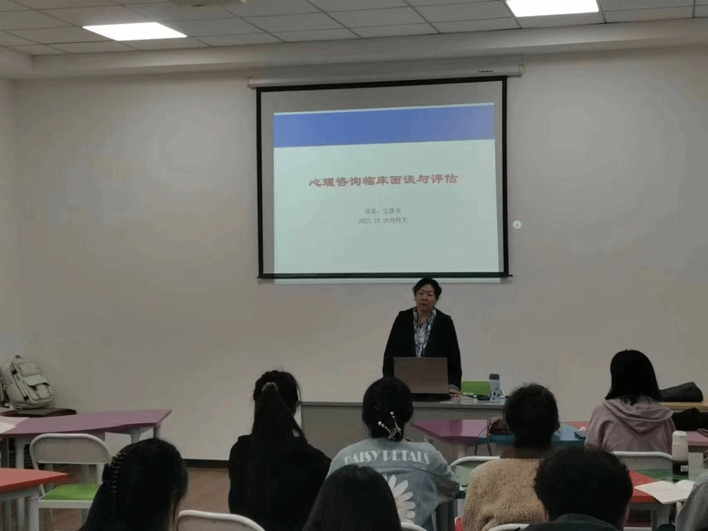 10月26日,365官网邀请内蒙古自治区第三医院原心理危机干预中心主任宝继英开展题为《心理咨询临床面谈与评估》的指导会,就心理咨询过程中的技术、方法、策略以及评估进行了现场授课和具体指导。