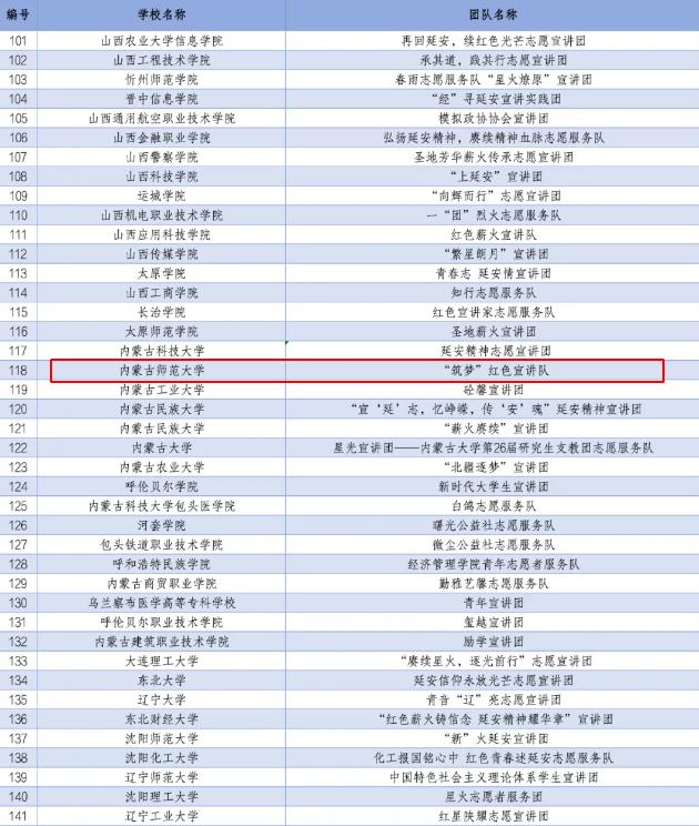 主办单位对所有申报材料进行了认真审阅,最终共遴选出北京大学、北京航空航天大学、北京理工大学等855所高校的1000支大学生志愿服务团队。365官网“筑梦红色宣讲队”成功入选。