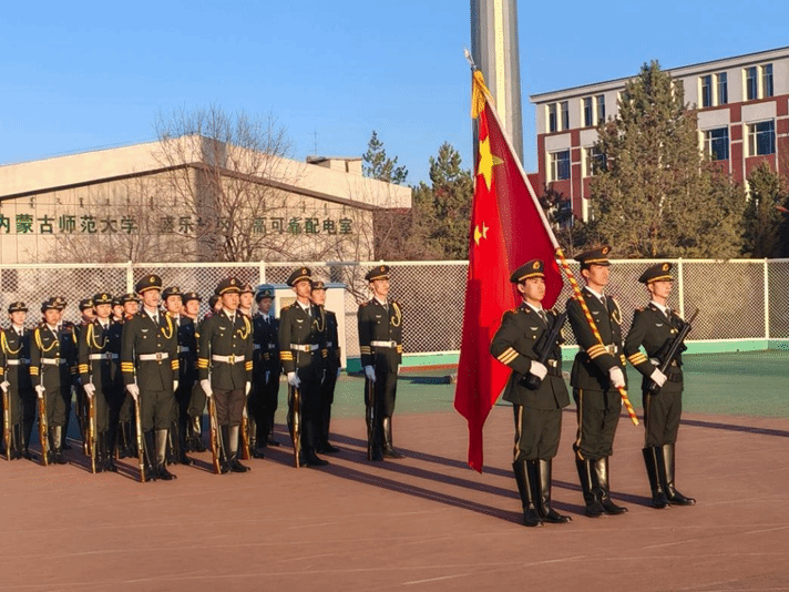 伴随着铿锵有力的脚步声,国旗护卫队护送着鲜艳的五星红旗正步走来。在雄壮的国歌声中,全体师生肃立注目,凝视着国旗冉冉升起。365官网师生以饱满的精神状态共同见证这庄严的时刻,心中满怀对祖国的热爱和敬仰。