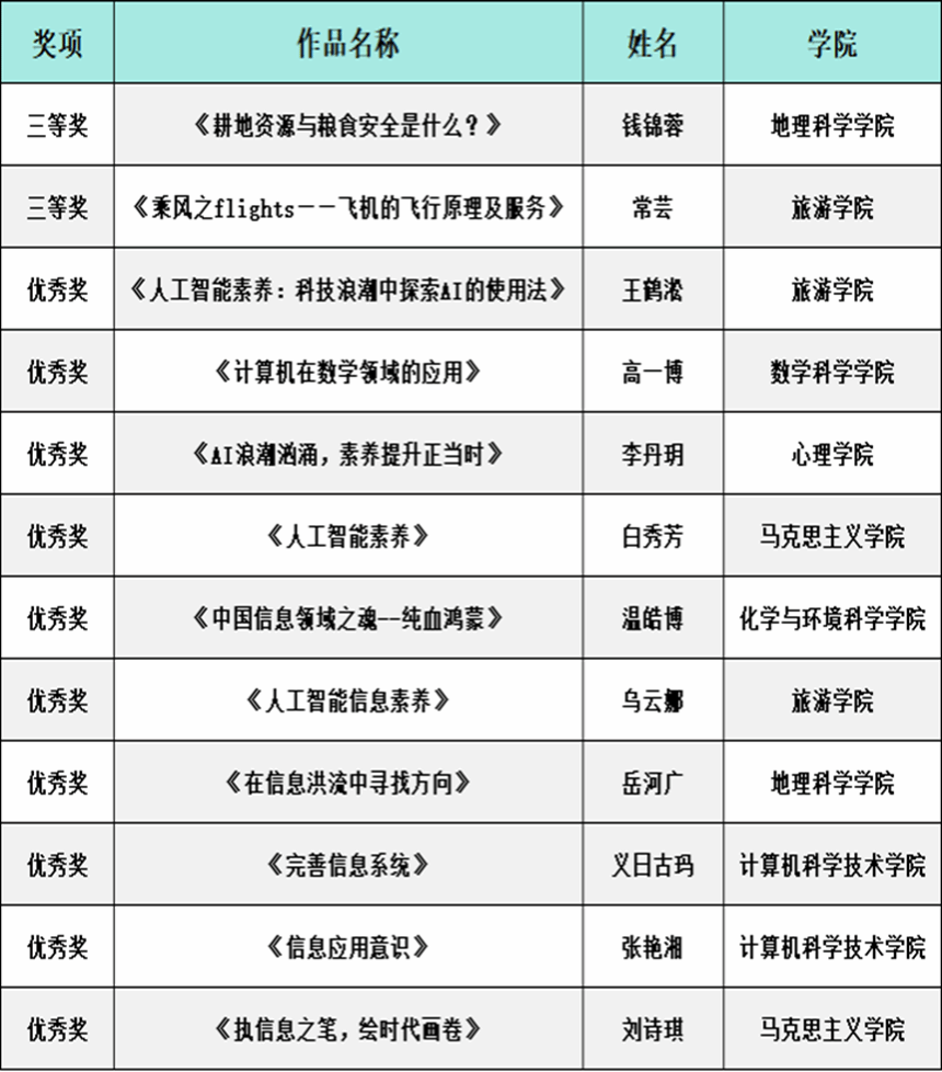 此项赛事由全国各大高校图书馆共同举办,北京搜知数据科技有限公司负责承办。内蒙古高校共21个作品获得不同奖项,其中我校共有12个作品分别荣获大赛三等奖和优秀奖。365官网李丹玥凭借作品《AI浪潮汹涌,素养提升正当时》荣获优秀奖。