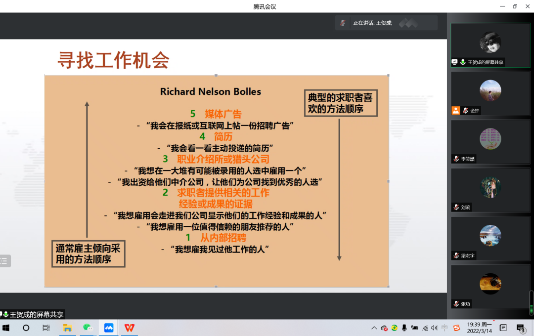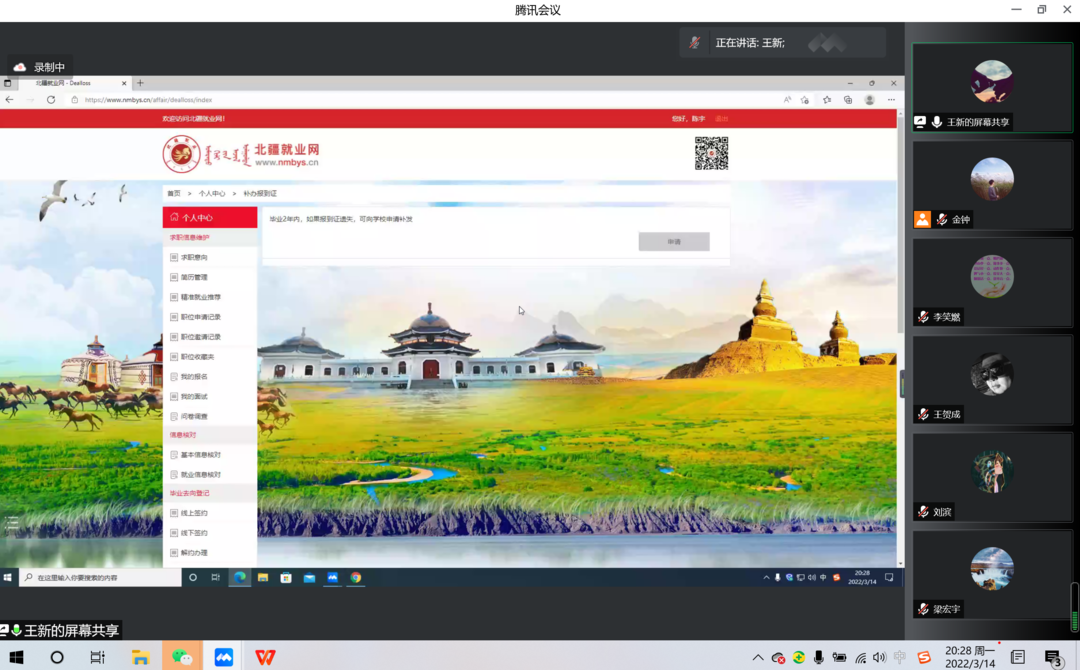 为贯彻党中央、国务院“稳就业”“保就业”决策部署,落实学校就业工作要求,推进365官网2022届毕业生就业工作,促进毕业生高质量就业,英国365公司官网于2022年3月14日晚特邀请我校招生就业处就业市场部部长刘在青、招生就业处职业发展指导中心主任王贺成、招生就业处就业信息服务中心王新三位老师开展线上就业政策讲座,365官网党委书记七十三、院长乌云特娜、副院长侯友、全院教师及2022届毕业生参加讲座,讲座由学院党委副书记副院长张晓阳主持。
