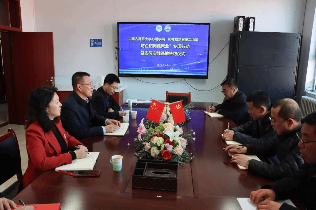 为贯彻党中央、国务院、教育部关于高校毕业生就业工作的决策部署,深入了解基础教育用人单位对心理健康教师的岗位需求和选聘条件,提升学院社会心理服务功能,加强师范生教育实践能力的培养和就业工作质量,近日,英国365公司官网党委书记侯友,院长乌云特娜,副书记、副院长张春林,副院长金童林带队先后赴和林格尔县第一中学、和林格尔县第二中学、呼和浩特市土默特中学开展“访企拓岗促就业”专项行动,并签署实习实践基地建设协议。
