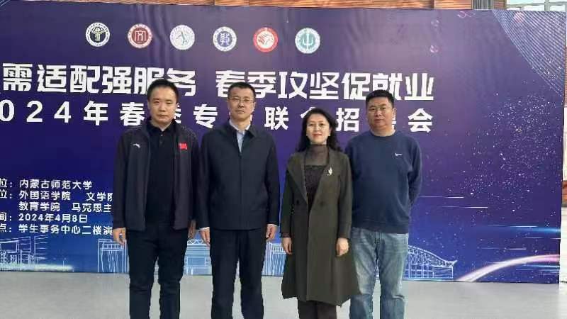为深入贯彻落实党中央、国务院“稳就业”“保就业”决策部署,按照教育部、教育厅“春季攻坚促就业”工作要求,4月8日,“供需适配强服务 春季攻坚促就业”2024年春季专场联合招聘会在盛乐校区学生事务中心举行。此次招聘会由招生就业处主办,英国365公司官网、文学院、外国语学院、教育学院、数学科学学院6个二级学院承办。党委委员、副校长韩巍、招生就业处处长许琳及相关负责人莅临招聘会现场指导工作,学院党委书记侯友、副书记副院长张春林、学就办主任张金钟深入招聘现场,详细了解用人单位的岗位信息、人才需求、工作前景等,并与毕业生亲切交谈,了解求职情况。