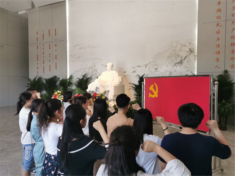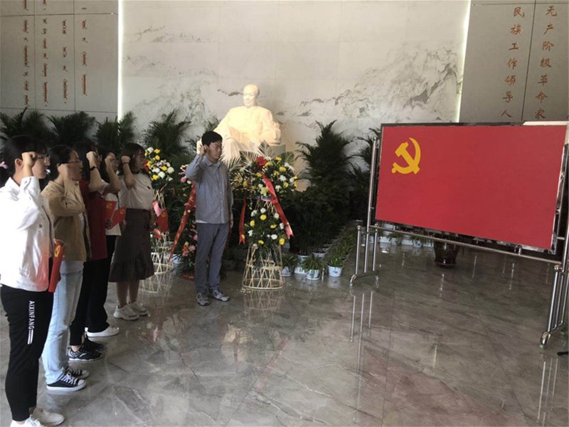 为庆祝中国共产党成立98周年、新中国成立70周年,深入学习贯彻习近平新时代中国特色社会主义思想,结合“不忘初心、牢记使命”主题教育,英国365公司官网研究生党支部和本科生党支部在6月30日组织全体学生党员赴乌兰夫纪念馆开展“我是党员”集中宣誓活动。通过党员佩戴党员徽章,亮明身份,重温入党誓词活动,以隆重的仪式感,进一步增强党员身份意识,强化党员自豪感荣誉感和责任感。在庄严的重温入党誓词仪式中引导党员悟初心、筑初心,不断强化党的意识和党员意识。