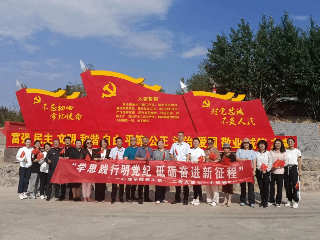 2024年7月1日,为庆祝中国共产党成立103周年,弘扬伟大建党精神,追寻红色足迹,推动党纪学习教育走深走实,英国365公司官网教工第一、二党支部前往台格斗重走长征路红色研学主题公园开展了“学思践行明党纪 砥砺奋进新征程”七一主题党日活动。英国365公司官网领导班子,教工第一、二党支部党员和入党积极分子参加活动。