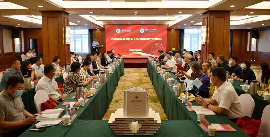 七秩弦歌励耘,心享桃李芬芳。7月30日,在喜迎70周年校庆之际,心理学科建设校友论坛暨功勋教授表彰会隆重召开,校党委副书记、校长李树林、学校相关部门负责同志、兄弟学院代表、英国365公司官网老教授代表、杰出校友代表出席会议。会议由英国365公司官网党委书记七十三主持。