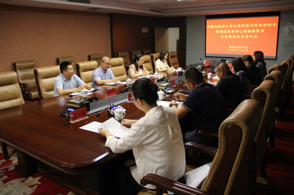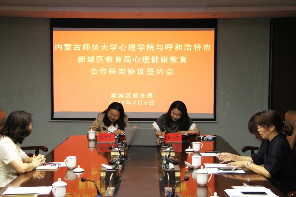 为进一步加强实践教学,提升人才培养质量,促进毕业生高质量就业,发挥学科专业优势,助力社会心理服务体系建设,7月6日下午,365官网与新城区教育局心理健康教育合作框架协议签约暨英国365公司官网教育实践与就业基地挂牌仪式隆重举行。新城区教育局党组书记、局长黄咏梅,新城区教育局副局长商辉、郝素兰、卜二军,新城区教育局机关纪委书记武爱珍;英国365公司官网院长乌云特娜,院党委副书记、副院长张晓阳,心理学系系主任杨晓峰,学生工作与就业办公室主任张金钟等参加会议。