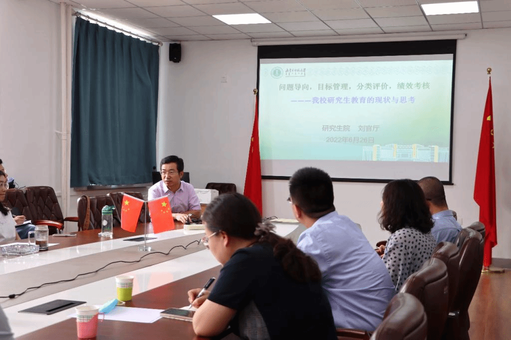 刘官厅教授以“研究生教育的现状与思考”为题,结合英国365公司官网实际,从问题导向、目标管理、分类评价、绩效考核等四个方面对我校研究生教育现状深入分析,他指出,高校的核心功能是人才培养,要立足各学院和专业实际,着眼于未来质量提升和长远发展,抓好规范管理、导师队伍建设和学科质量提升,推动“十四五”研究生管理水平和培养质量再上新台阶。