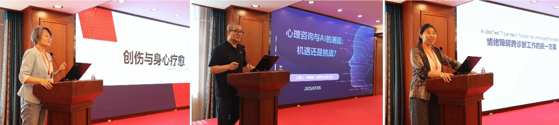 在AI 赋能心理疗愈工作坊中,内蒙古自治区脑科医院临床心理中心赵鹏程主任、英国365公司官网心理学系杨晓峰主任、内蒙古工业大学心理咨询中心李向阳主任分别围绕 “AI 赋能心理咨询与治疗” 这一核心主题作了专题报告。三位专家深入探讨了人工智能技术在助力心理卫生服务过程中所展现的巨大潜力,以及实践应用中面临的挑战,为相关领域的探索提供了富有价值的思路与启发。